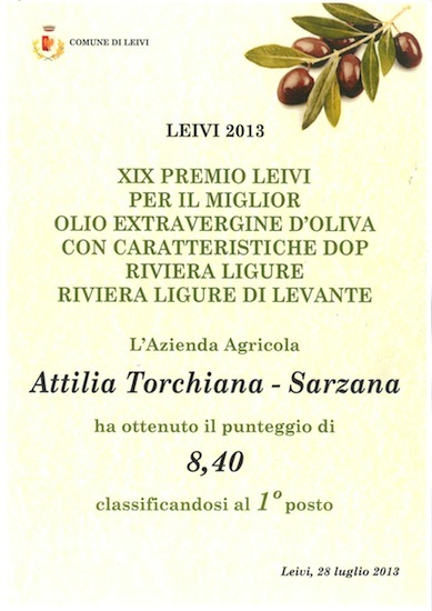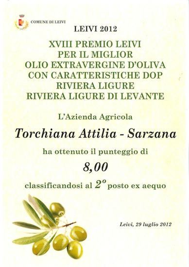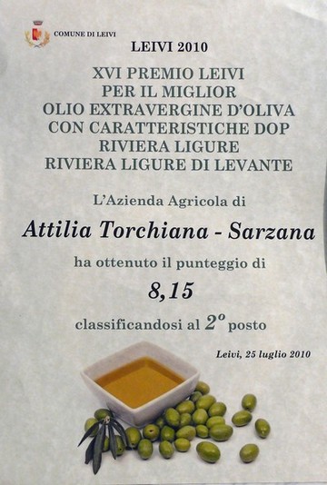 I riconoscimenti sono da allora costanti. A Leivi nel 2010 si classifica seconda con punteggio panel di 8.15 su 64 campioni di olio delle provincie di La Spezia e di Genova.