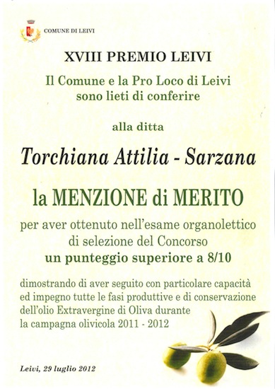 Il lavoro iniziato da Attilia Torchiana viene poi proseguito dalla figlia, Isabella Stanchi, con passione e nel 2011 arrivano i risultati: la Giuria Speciale dei “Ristoratori e Giornalisti” a Leivi le attribuisce il premio per “il miglior olio” in Rassegna.